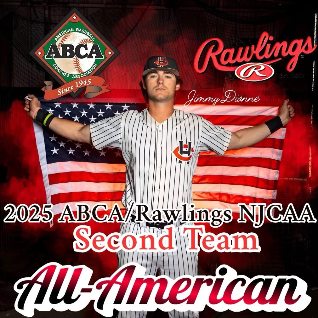 Hawk 1st Baseman Jimmy Dionne has been named to the 2025 ABCA/Rawlings NJCAA Division I Second Team All-American, marking a major milestone in both his career and the legacy of the HC Hawks baseball program.