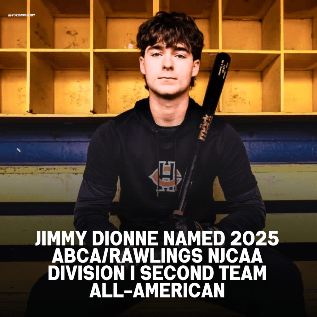 HC Hawk Athletics shared the news with pride on social media, stating, “We’re not done yet!! ANOTHER round of applause for Hawk 1st Baseman Jimmy Dionne for earning 2025 American Baseball Coaches Association/Rawlings Sports DI Second Team All-American honors 🎉⚾👏🇺🇸.” The post featured Dionne in his pinstriped jersey, posed in front of the American flag, capturing the patriotic pride and spirit of achievement surrounding the award.
